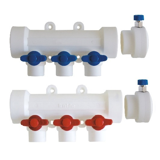 "KALDE" (Туреччина) Колектор поліпропілен з кранами 40х20 4 вих. СИНІЙ